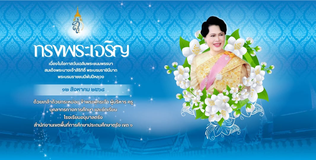ทรงพระเจริญ เนื่องในโอกาสวันเฉลิมพระชนมพรรษา สมเด็จพระนางเจ้าสิริกิติ์ พระบรมราชินีนาถ พระบรมราชชนนีพันปีหลวง 12 สิงหาคม 2568 ด้วยเกล้าด้วยกระหม่อม ขอเดชะ ข้าพระพุทธเจ้า คณะผู้บริหาร ครู บุคลากรทางการศึกษาและนักเรียน โรงเรียนอนุบาลตรัง สังกัดสำนักงานเขตพื้นที่การศึกษาประถมศึกษาตรัง เขต 1 กระทรวงศึกษาธิการ
